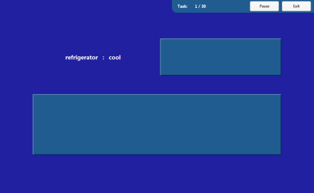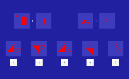 At Analogy Test participants have to recognize corresponding pairs of words or figures. Analogy Test provides a rule-setting reference item combination and requires test takers to find the item that completes a second combination in such way that the relationship of the items (words or figures) maintains the relationship introduced by the reference item combination.